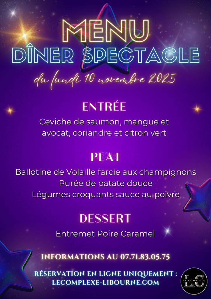 Dîner Spectacle le lundi 10 novembre 2025 !!